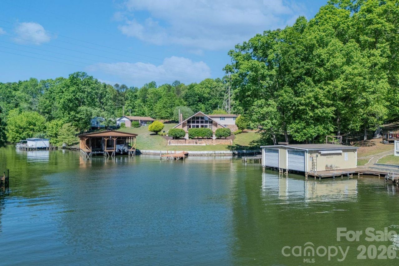 Welcome to River Haven at Lake Tillery?one of the area's most desirable waterfront communities, where winding roads showcase the natural beauty of the Uwharrie foothills. Nestled on a spacious, gently sloping lot, this property offers both privacy and an easy approach to the water's edge.This charming A-frame home is designed to maximize its stunning lake views, featuring a dramatic floor-to-ceiling wall of glass that fills the interior with natural light and opens to an expansive waterside deck?perfect for relaxing or entertaining. The deck is already wired for a hot tub, creating an ideal outdoor retreat.Inside, the great room boasts a striking stone fireplace with gas logs, creating a warm and inviting focal point. The open kitchen overlooks the great room, making it easy to host and stay connected with guests.The lower level includes a spacious primary bedroom with a walk-in closet, a convenient laundry area, and a guest bedroom?perfect for hosting family and friends. Upstairs, a loft overlooks the great room and offers beautiful views of the lake. A later addition enhances the home with a generous recreation room featuring French doors and a full bath?perfect as a second primary suite, guest quarters, or flexible living space.Completing the property is a two-slip boathouse with an oversized storage area, ideal for all your lake gear and watercraft.Just bring your decorator's touch to make this home your own and enjoy lake living at its finest?peaceful, private, and designed for making lasting memories.